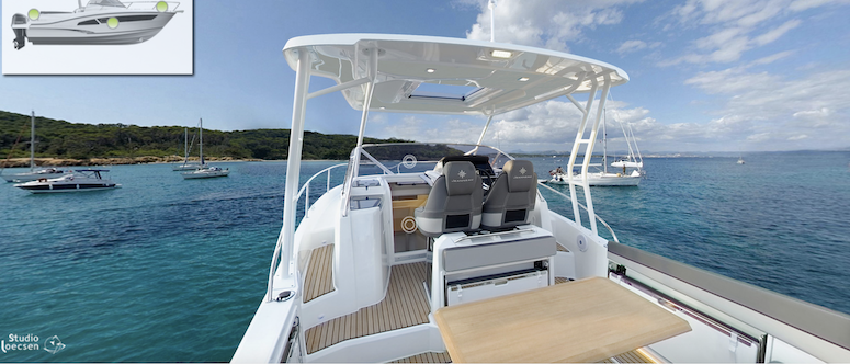 Jeanneau Cap Camarat 9.0 WA 2022, lightly used and available for sale. This unit has some interesting equipment options for fishing trips.