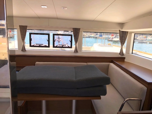 This is Lagoon 40 2020 4 cabins, 4 heads version. with single beds on the front peaks, available for sale.