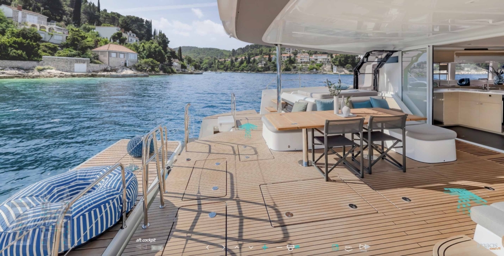 The whole thing is very open from the aft transom, in line with the program of these boats which is oriented towards relaxation.